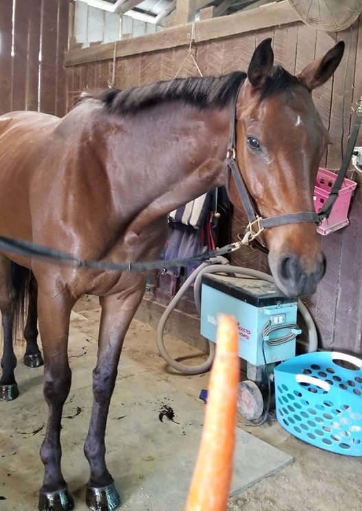 | Wondering how he is the ONLY HORSE in the barn with an owner that also owns a dressage whip |